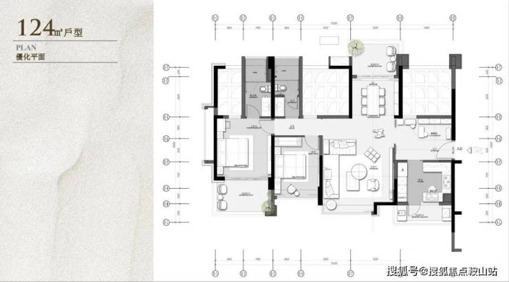 户型面积布局4124平四房两厅两卫