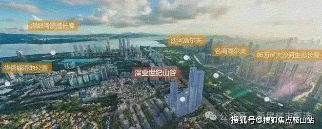 深业世纪山谷位于大沙河生态长廊侧畔,东边是欢乐谷、世界之窗,西面是200万平方米高尔夫球场,北望塘朗山公园,南面既能眺望海景,同时也能看到深圳湾超级总部基地所在。单从这个位置来看,就已经具备了难以复制的稀缺性。