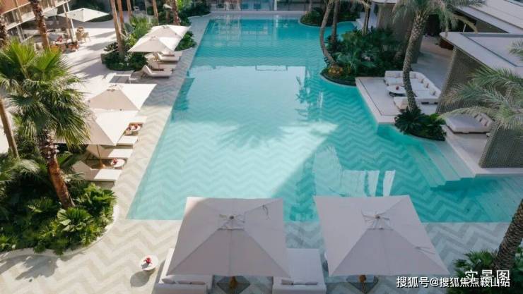 信步示范区内部,犹如徜徉一片三亚市心的静谧绿洲。来自曼谷的景观事务所TROP借鉴海内外高奢度假酒店形制,以“一心双庭”设计融合热带植被水景,带来丰富且宁静的度假氛围。