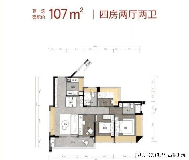 户型:建面约80-110㎡三到四房两卫