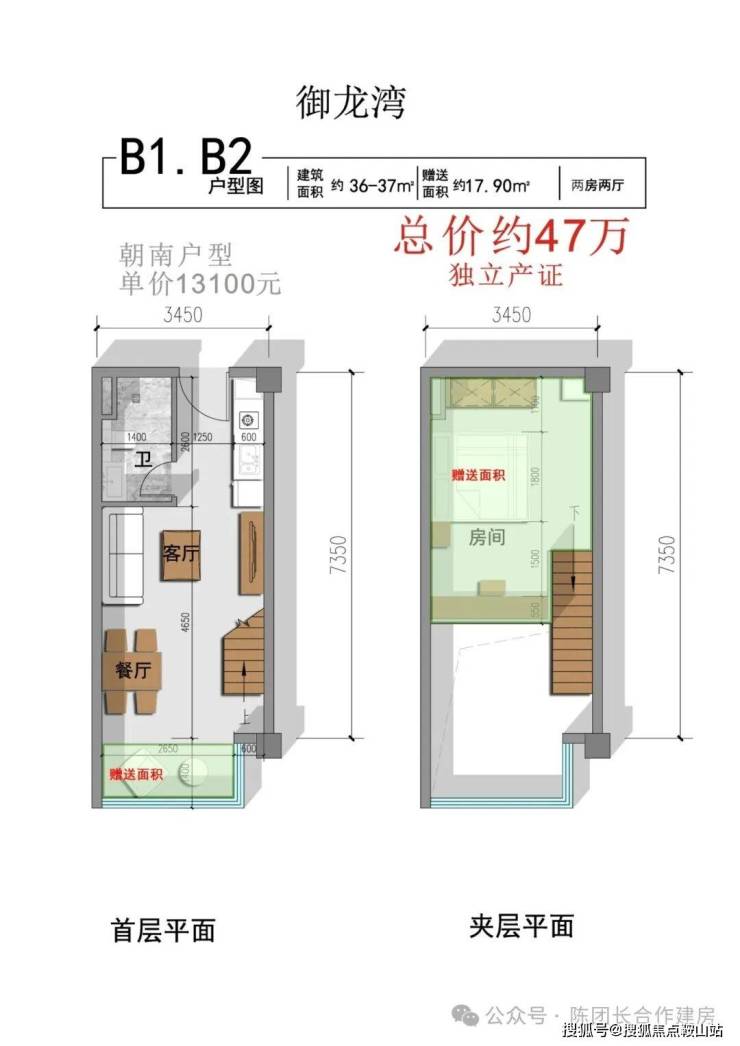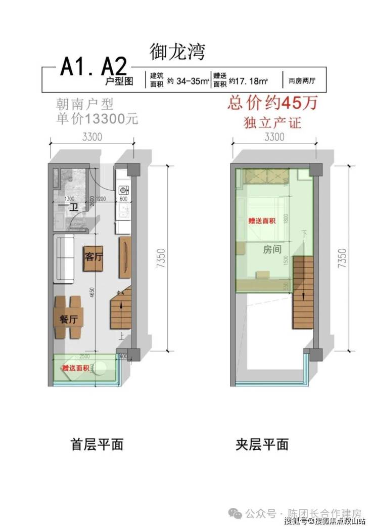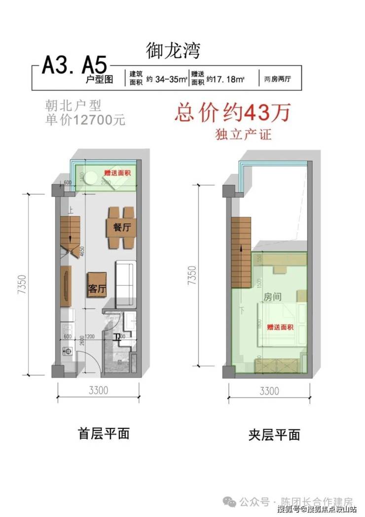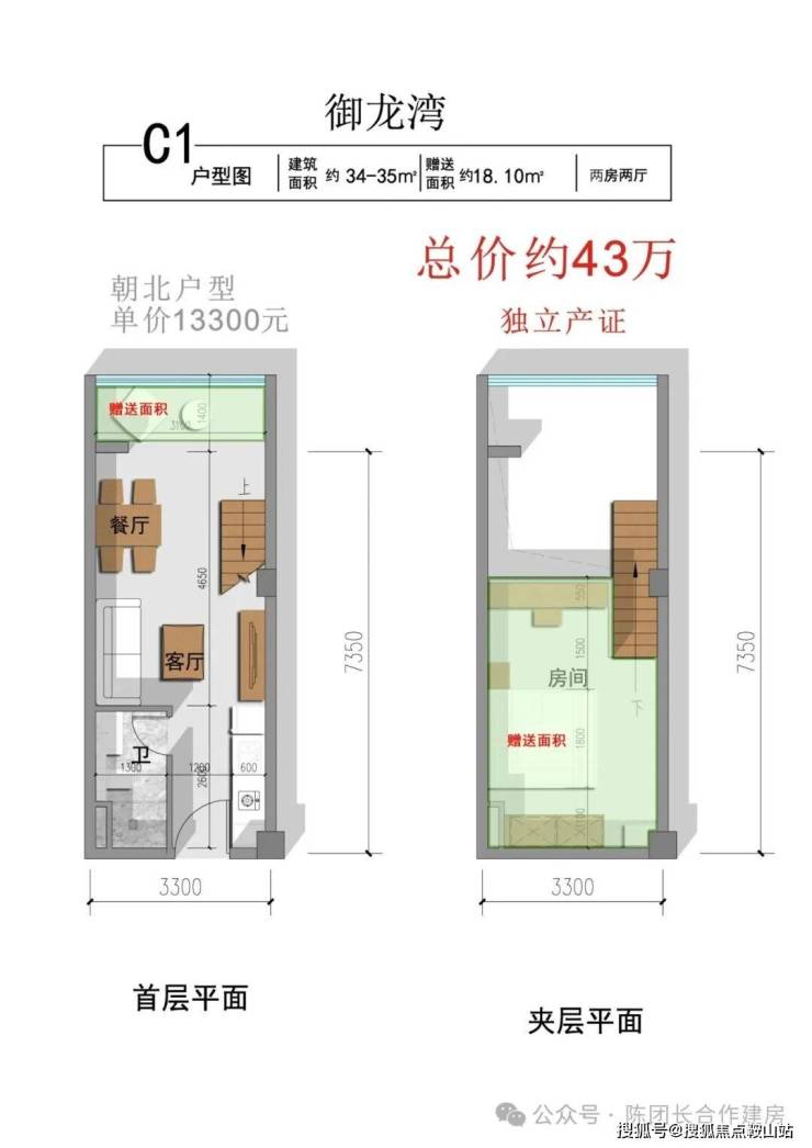 二楼5.4米挑高复式,单价约13000/平,总价42万起