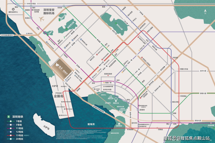 • 地铁:距11号线「碧海湾站」约800米,1站机场、1站宝中、3站前海,1、5、11、12号线共四条地铁线路通达各片区核心,另有15号线直通前海(深圳“一环线”,规划中)