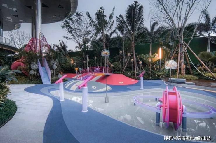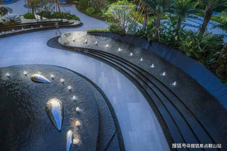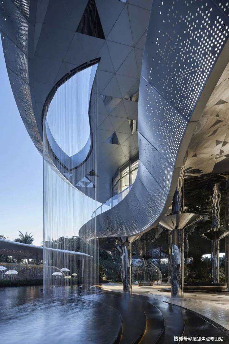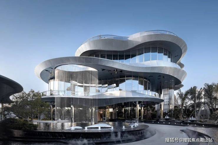 自由建筑,飞翘的片墙、扬起的飞檐、漂浮的廊道与和水遥相呼应,营造折叠时光般的奇幻意境。