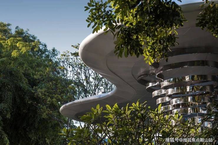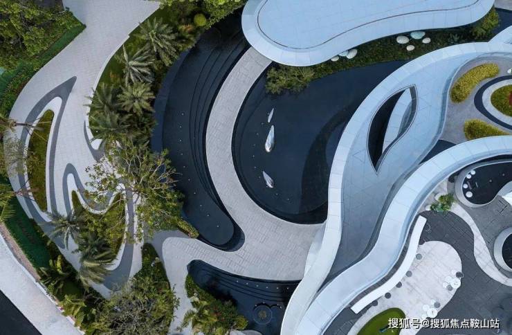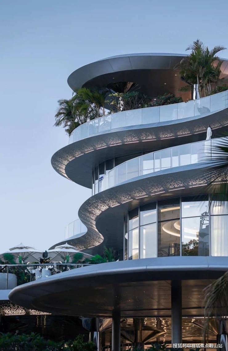 设计师提炼了海南得天独厚的山水特征和怡人的气候条件优势,以云朵般的柔软感,流畅的建筑形体加深与环境的结合度,创造出不同的光影感,实现建筑与自然共生的绿色城市实践。