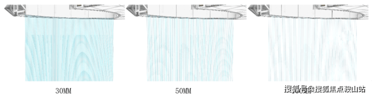 水幕光纤丝30mm,50mm,100mm的间距效果对比,我们采用间距50mm的合理截面距离,形成水幕的朦胧感效果方便后期维护。