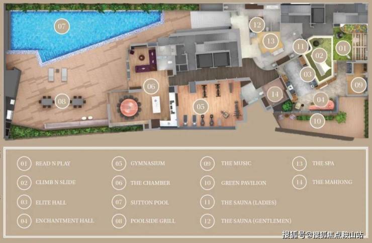 项目设有面积逾6,000尺的住客会所提供包括游泳池、健身室、桑拿房、水疗区、音乐室、卡拉OK室、儿童游戏室、户外烧烤区及4个宴会厅等设施。