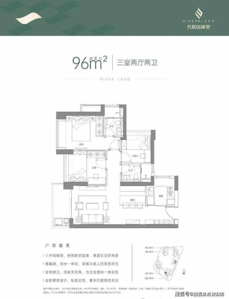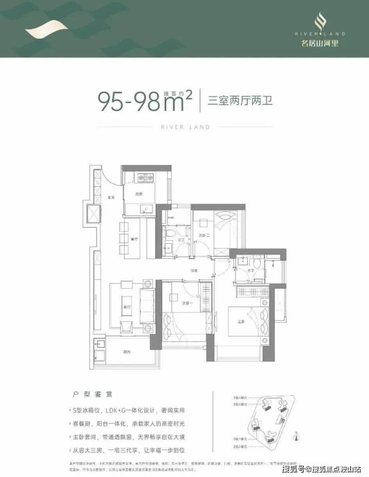 95-98㎡的3房2厅2卫,