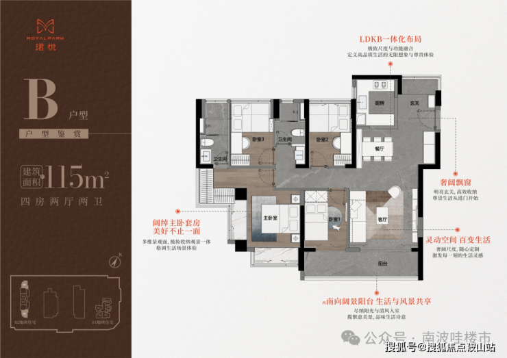 115平方米户型创新采用“双动线玄关”,实现老少分区的隐私保障。