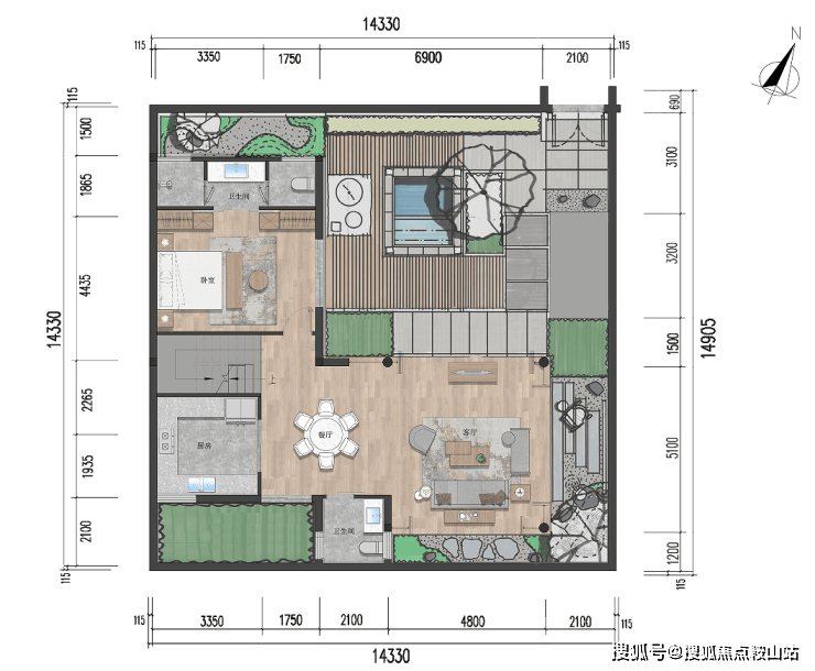 🌴【独栋小院:三室两厅四卫 建面约97㎡】