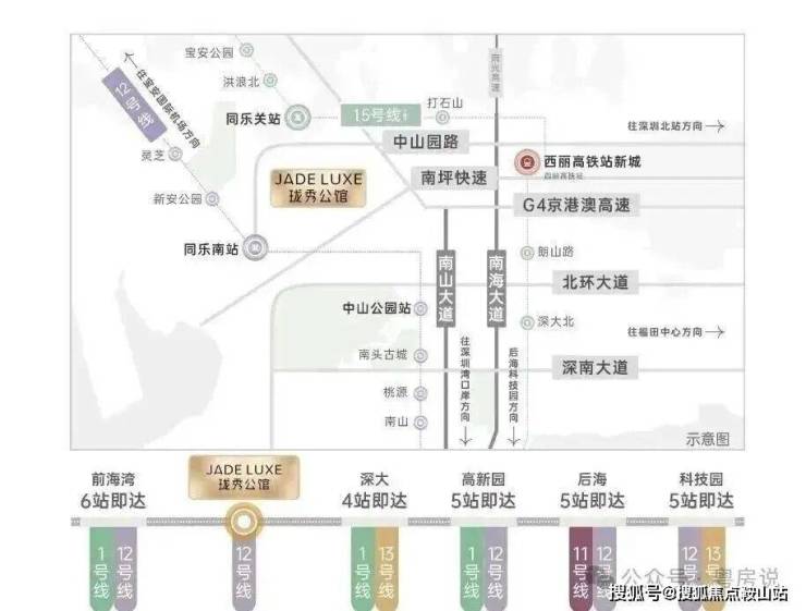 项目周边聚集深圳头部产业资源:西侧为科技园(腾讯、大疆等科技企业总部),东接前海金融中心,南靠蛇口自贸区,北邻留仙洞战略性新兴产业总部基地。区域内以高新技术、金融、总部经济为主导,吸引大量科技从业者及金融精英,形成高净值人群聚集效应。同乐片区未来或承接南山产业外溢,成为职住平衡的重要节点。