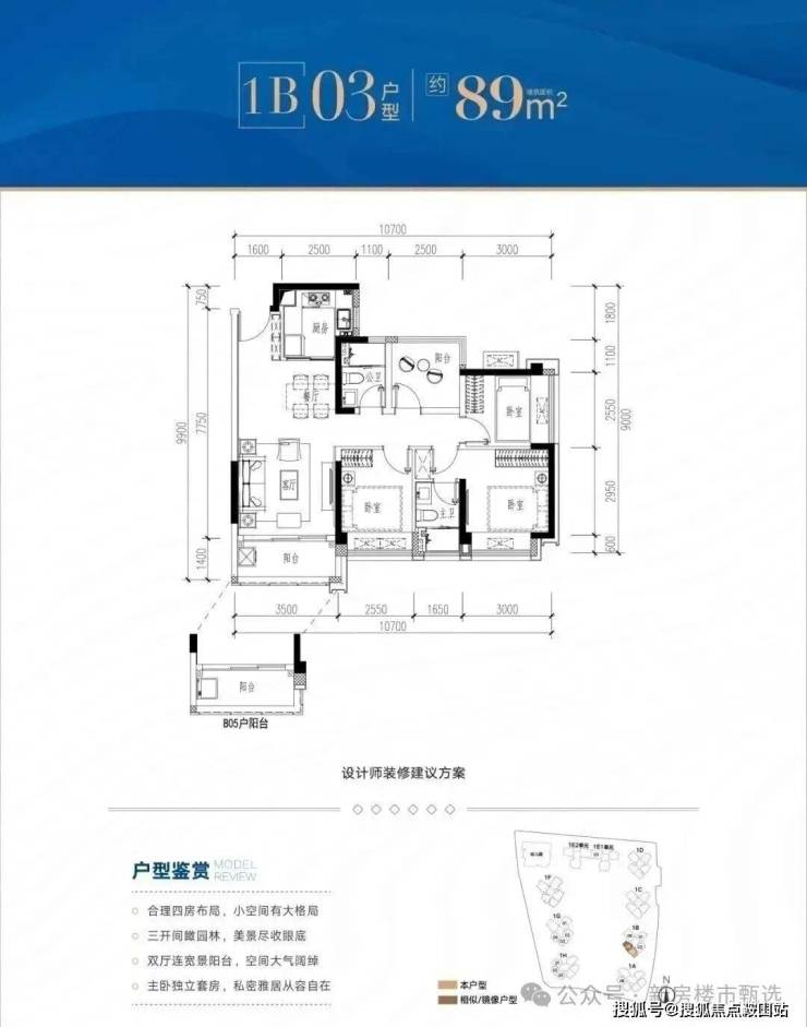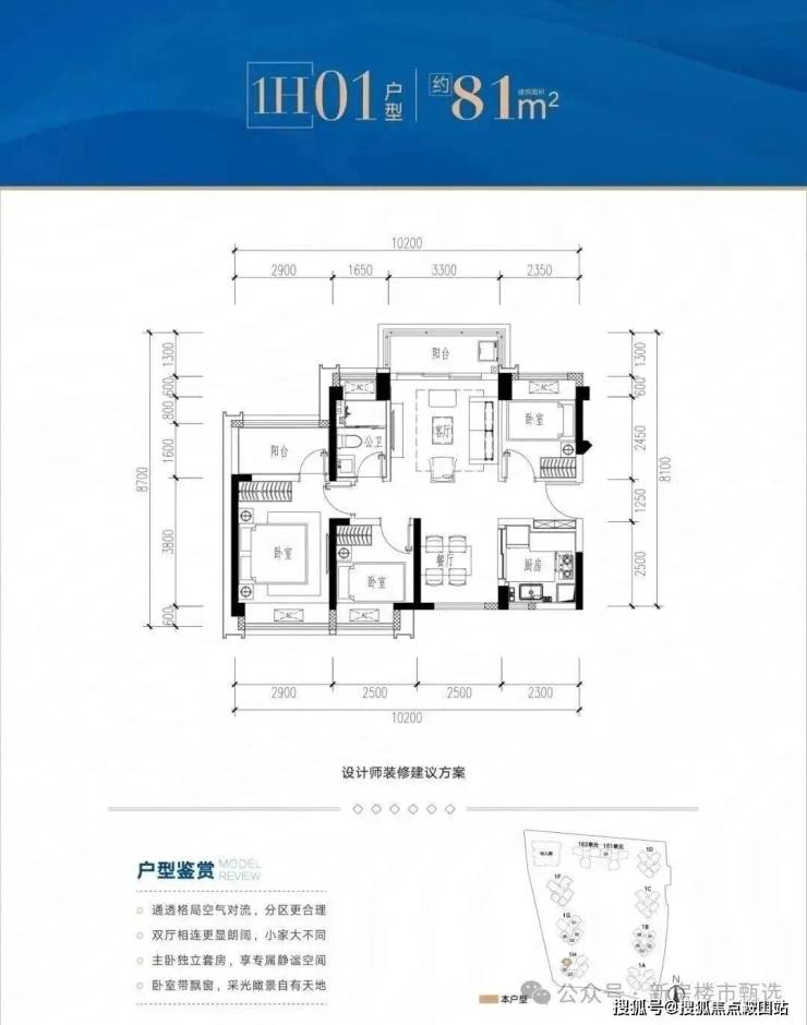 项目首推1栋B/G/H/E座,共333套,户型建面为81㎡3房2卫、89-109㎡4房2卫和135m²5房2卫。