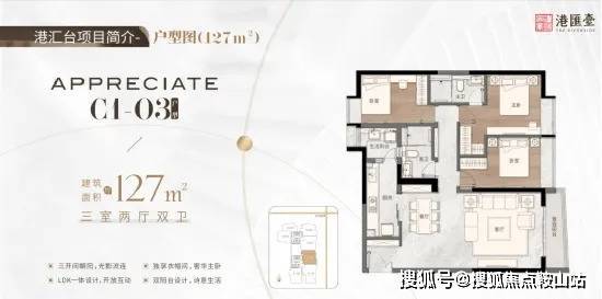 127㎡三房两厅两卫,三开间朝阳,釆光景观无遮挡,LDK一体设计,开放互动,大开间设计,释放更大的活动空调,双阳台设计,诗意生活