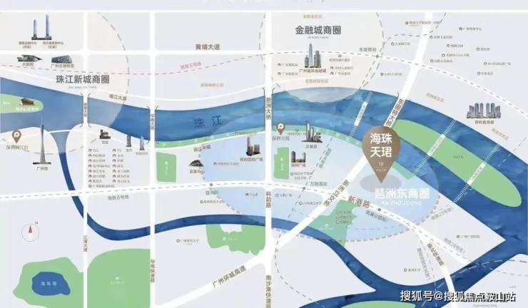 保利招商·海珠天珺位于珠江南岸,基地周边现状为低层、多层建筑,属海珠区琶洲东板块。