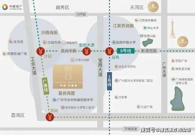 中旅天宸府位于海珠昌岗中路与宝岗大道交汇处,宝岗大道、工业大道、江南大道,海珠三大黄金走廊环绕,可谓是海珠核心地段。