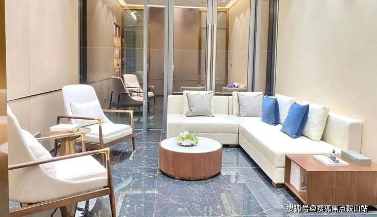 整个开放式洽谈区的光线明亮、空间宽敞而舒适,悬挂在半空的艺术灯饰,似羽毛轻盈,又如浪涛翻涌。一杯茗茶,落座其间,未来的理想企业人居生活在这里娓娓道来。