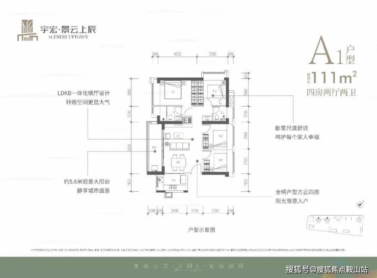 111㎡的4房2厅2卫,折后总价457-594万/套,单价4.15-5.4万/㎡