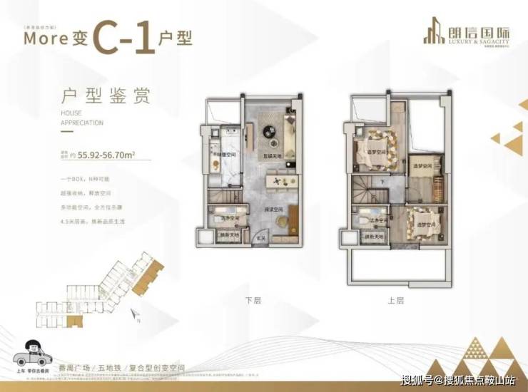 建筑面积:56平方3+1户型(极简轻奢风)