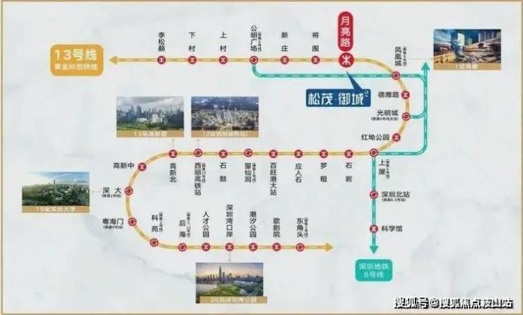 距离在建的13号地铁月亮路站约400米,1站到凤凰城,3站到光明城站,计划在2025年底通车运营。