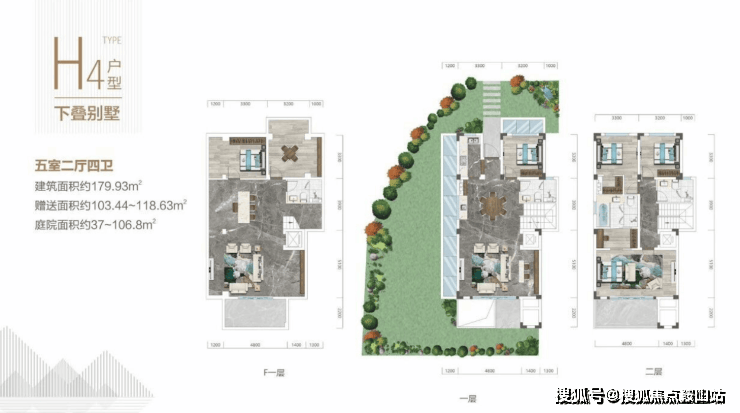 下叠179㎡,5房2厅4卫,共计3层,花园37-106㎡,赠送面积118㎡,实用面积320-400㎡,另赠送地下停车位,私家电梯层层通达。 (970万———1005万)🤑