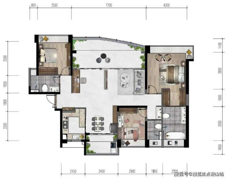(3、5-7栋01户,非最终版本,各梯腿户型有所差异,以售楼部现场输出为准)