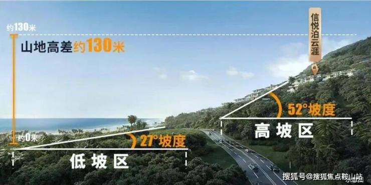 从洛杉矶比佛利山庄到香港太平山,“半山”可谓是全球高端人居的标志。项目依托原生海涯的地形起伏,最高处形成约130米的天然高差,形成27°低坡区和52°高坡区,让山海院落顺坡层层铺开,背山而居,面海而生,形成独特的立体海岸格局。