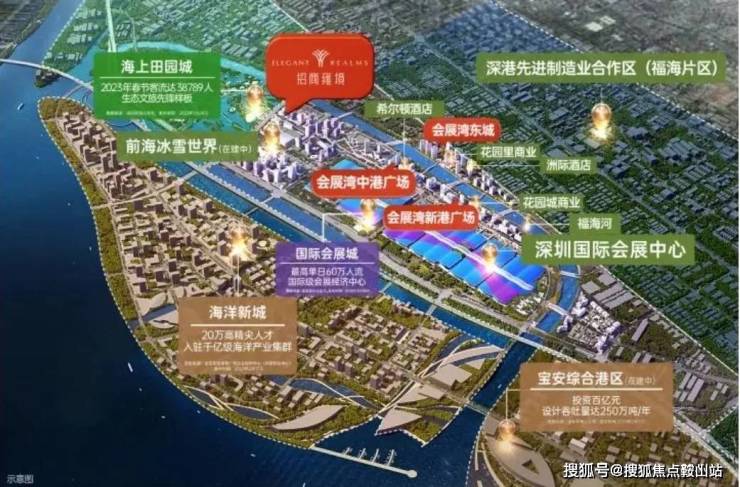 招商会展湾名邸,位于深圳市宝安区核心区域,是前海合作区扩容后的重要组成部分,地处粤港澳大湾区“黄金内湾”东岸与广东沿海经济带“黄金中轴”的交汇处,招商雍境售楼处电话:400-150-5057毗邻华发冰雪世界(在建)、宝安国际会展中心片区,海上田园、海洋新城。