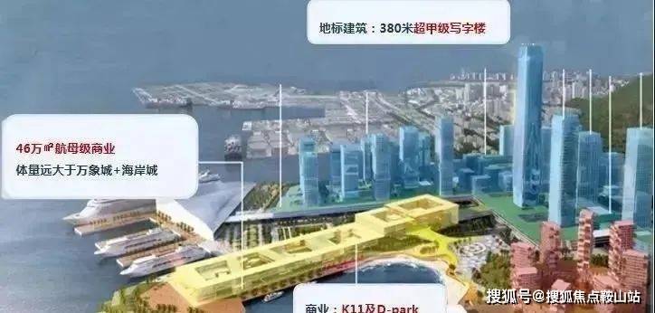 业态:集邮轮母港、总部办公、顶级商业、高端居住、五星级酒店、文化艺术、国际学校、国际医院等多元业态于一体