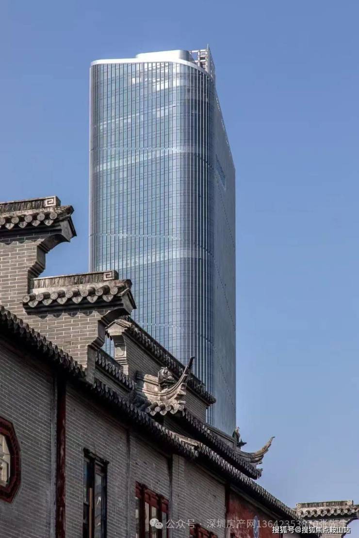 【项目简介】:大厦地上54层,地下5层,楼高260米,打造集约7.9万㎡高端办公,约2.5万㎡酒店,约0.4万㎡商业于一体,总建筑面积11.2万㎡垂直综合体。