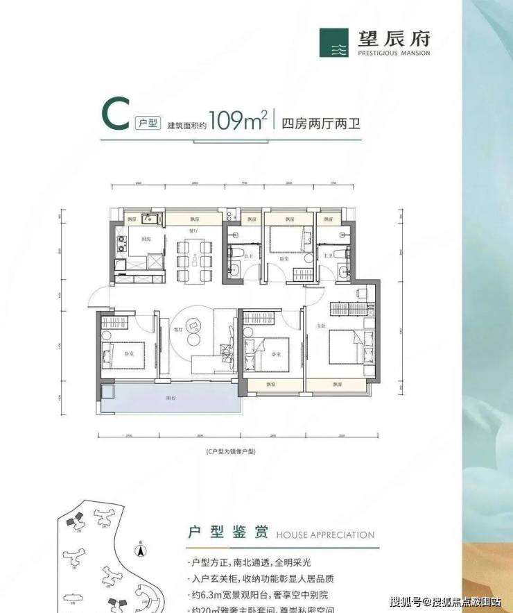 建面约109㎡四房两厅两卫。南北通透,实用性强。大横厅设计,餐客厅一体化,延展出宽阔的生活主场。双面采光,室内空气对流清新,居住更加健康舒适。外接观景阳台,开间达到约6.3米,透过窗外,即可轻松感受近270°广角梧桐山风光。阔境生活空间,带来的不仅是非凡的视野,更是层峯人士品位的象征。