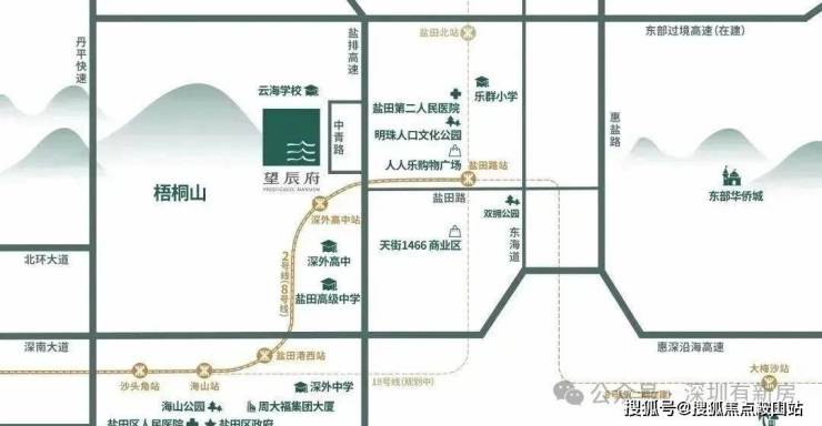 地铁8号线:项目临近“深圳黄金南环线”8号线“深外高中站”直线距离约500m。