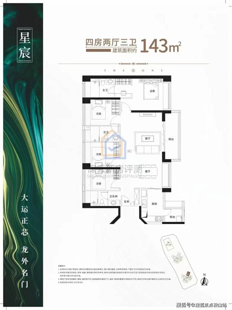 144㎡南北通透大四房户型,单价5.20-5.07万,749-859万;