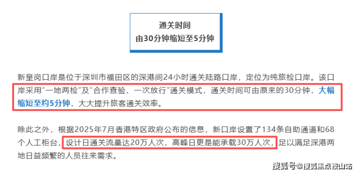 与此同时,深港互联再提速。新皇岗口岸联检大楼主体结构已基本完成,未来福田往来香港预计通关时间将从30分钟大幅缩短至约5分钟,日通关流量预计可达20万人次。这一“超级口岸”的落成,将使福田成为深港双城融合的最前沿。