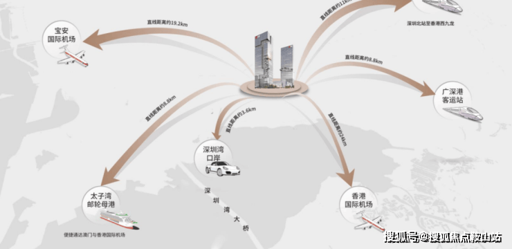 深圳一个无需换乘,即可轨道直达五大出境口岸的超级枢纽,海陆空立体通达,链接全球,地下交通层可以直接办理值机。