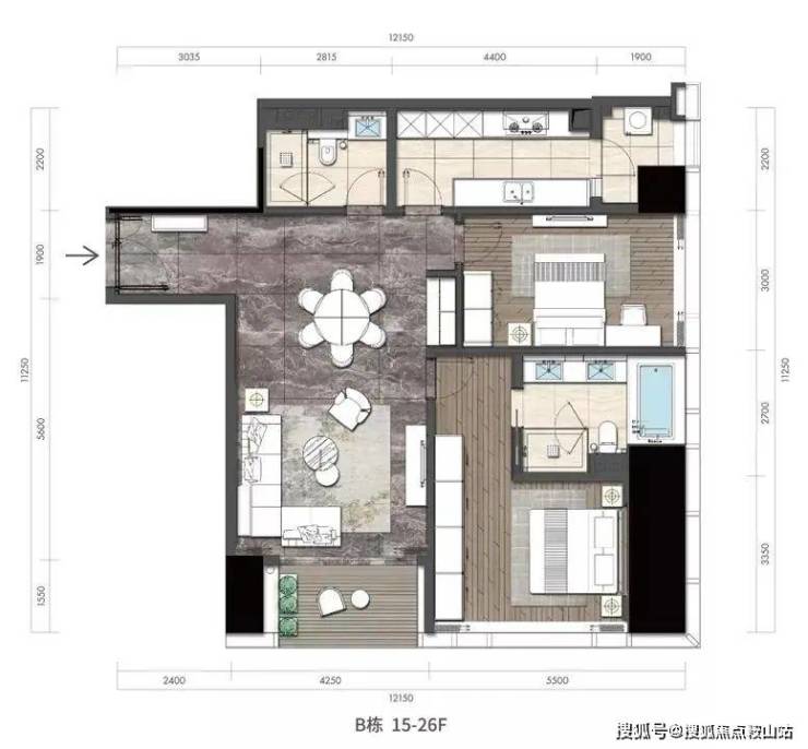 Ø双卧室分区布局,尊享私密生活;