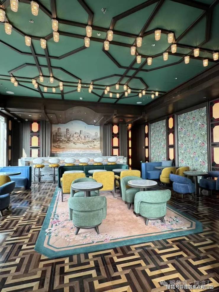 宴庭:34F (以粤菜为主,主厨曾工作过新荣记,丽苑以及其他米其林餐厅,餐厅带有户外露台用餐区域,大厅可容纳202位客人同时用餐 ,四个包房分别可容纳8-14位客人)