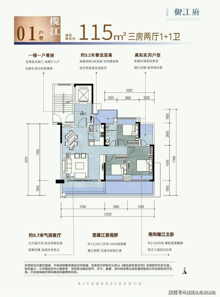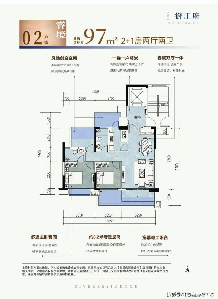 建面约97-115㎡一梯一户 南向亲江好房