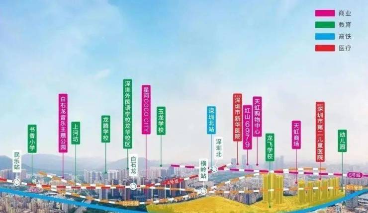◎红山位于深圳北站总部基地中央生活区,是龙华的高品质住宅区域。红山之于深圳北站总部基地,无异于香蜜湖之于福田CBD、后海之于深圳湾超总基地。