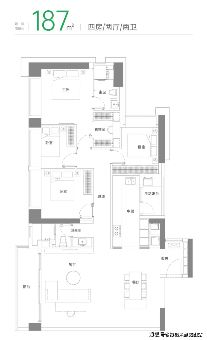 主力户型:110-187㎡全改善户型,适配高端需求