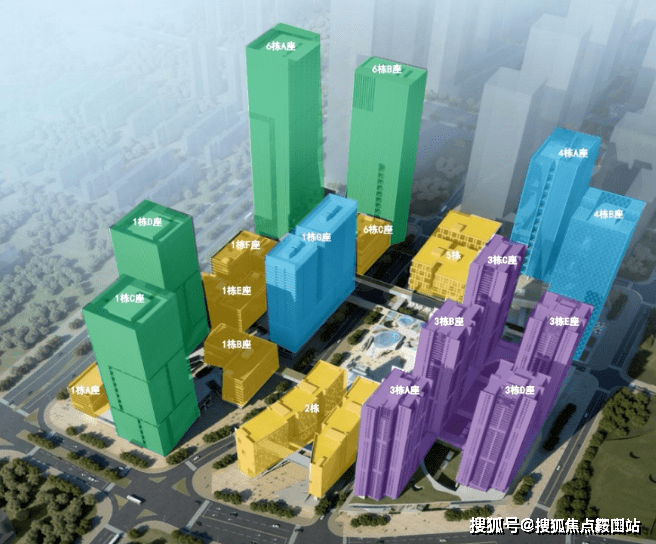 (图中1栋A-G座为一期产品,2栋及3栋A-E座为二期1标段;4栋AB座及5栋为二期2标段;)