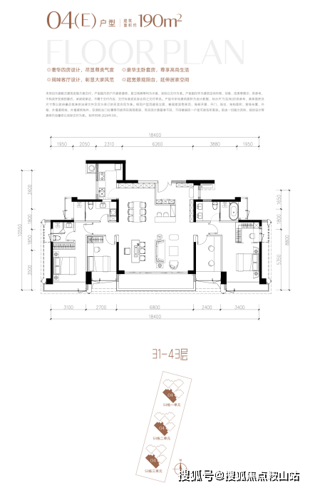 约190㎡户型南北通透,户户带270°采光阳台。双套房+独立入户玄关设计搭配宽景大阳台及高使用率,居住舒适度拉满。