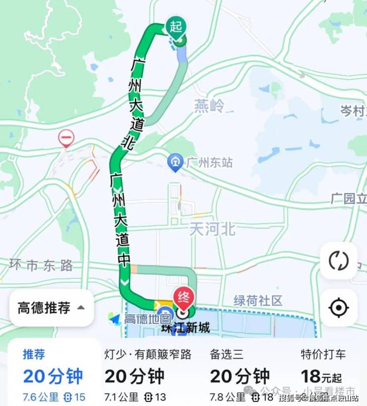 自驾去珠城:出小区怡新路转至广州大道北,再转黄埔大道西,全程7.6公里到达珠江新城,耗时20分钟左右。