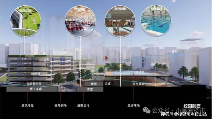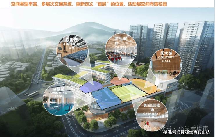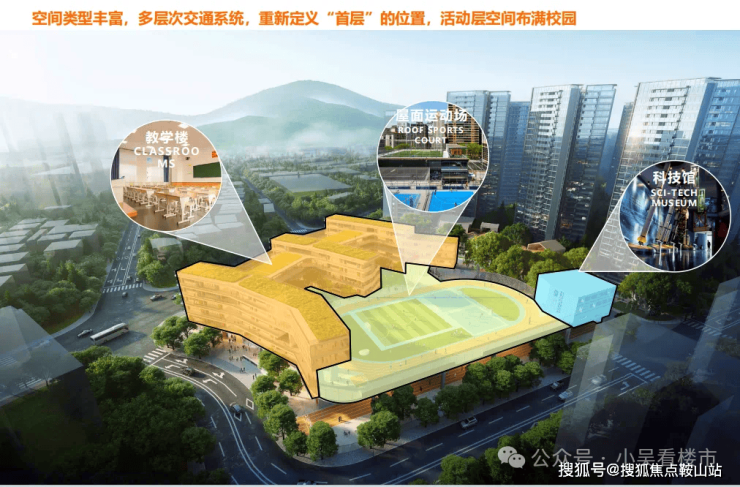 在学校设计上,越秀·天河·和樾府也做了创新,由教育产品大师操刀设计,依托项目场地原生榕树群,打造广州领先的榕树下立体校园里的复合教育空间。通过将架空运动场与教学楼的形态抽象成山与燕,提炼出本项目设计概念——错落台地·展翅燕塘。