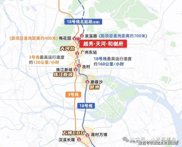 项目位于天河北梅花园板块,距离珠江新城直线距离仅5公里,这里可一路串联广州大道北、天河北、珠江新城等商圈,小区距离地铁3号线梅花园站步行约800米,附近还有在建设的18号线北延段京溪路站,小区旁还配建了幼儿园以及九年制学校,由华阳小学+广州中学管理,预计明年9月份就能开学。