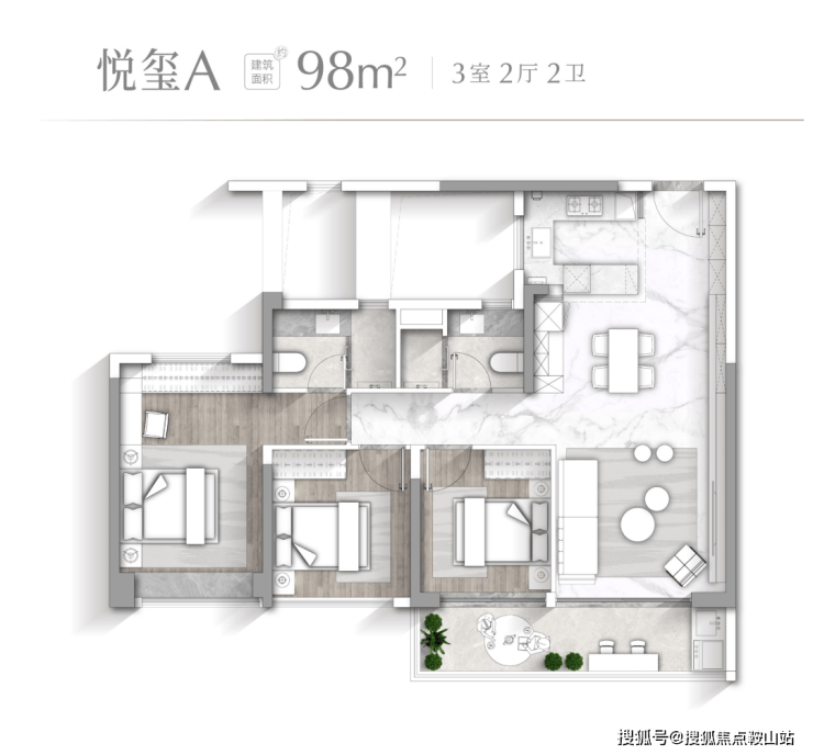 厅卧空间灵活改造约8.4米双面宽阔景阳台,匹配全生命周期使用