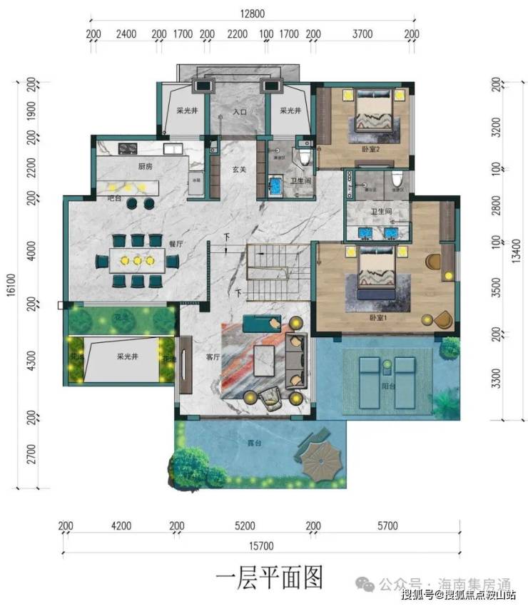 二层一梯两户,平层带三个露台