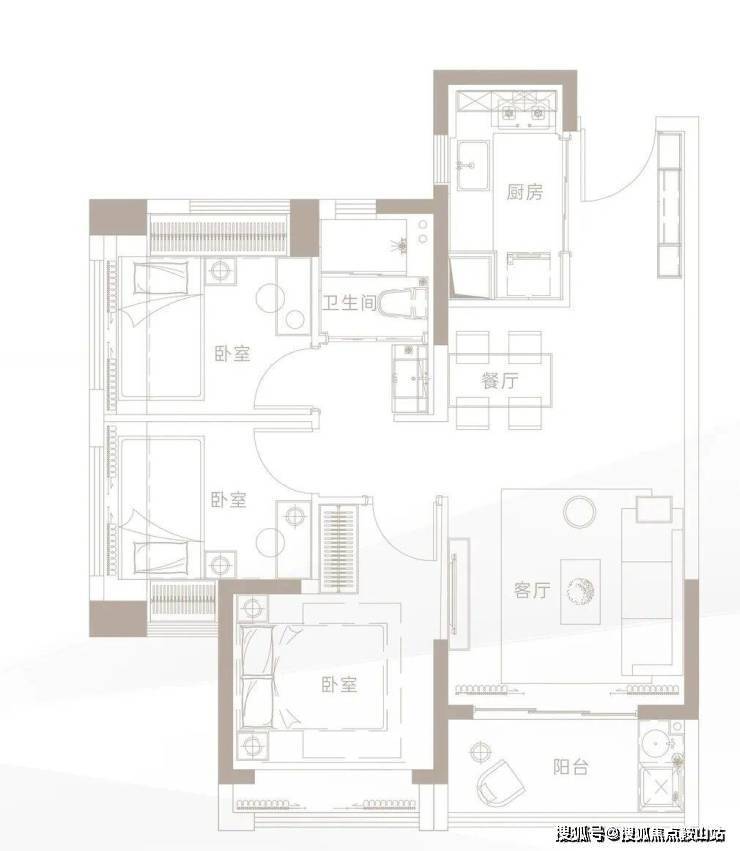 主力户型:约79㎡三房两厅一卫