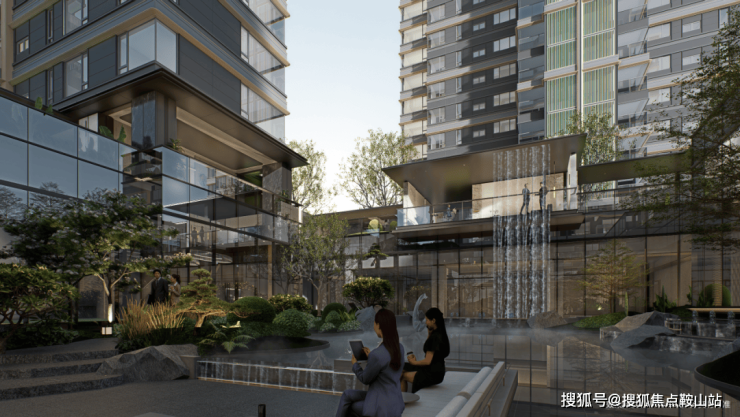 社区双重立体园林——上浮的“三境七颂”东方奢境与下沉约600平方米琉璃光苑——通过约10米巨幕飞瀑串联,将园林变成流动的圈层秀场,每一步皆尊贵。