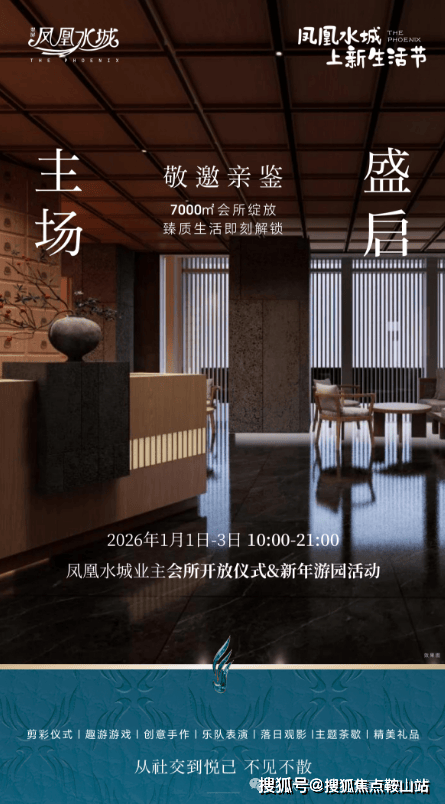 凤凰水城始终坚守初心,不做一次性的建筑交付,只愿与业主相伴成长。这份美好,今有新篇 ——7000㎡全新业主会所,2026 年 1 月 1 日正式开放!1 月 1 日 - 3 日,现场更有热闹游园活动。诚邀您与家人,共赴这场新年之约,启幕新岁的万般美好。