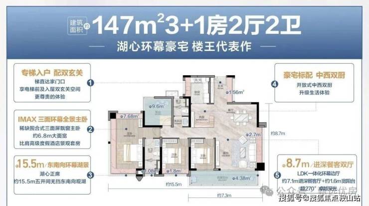 💡湖心环幕大四房,建面约147㎡四房两厅两卫