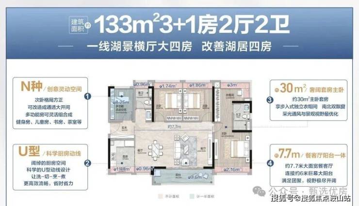 💡改善湖居四房,建面约133㎡四房两厅两卫